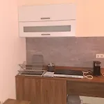 Mejora tu estancia con la pequeña cocina del Apartamento Golfplatz, amueblada con cafetera/tetera, nevera y menaje de cocina para tu comodidad. La parada de autobús Robinson Siedlung está cerca del apartamento.